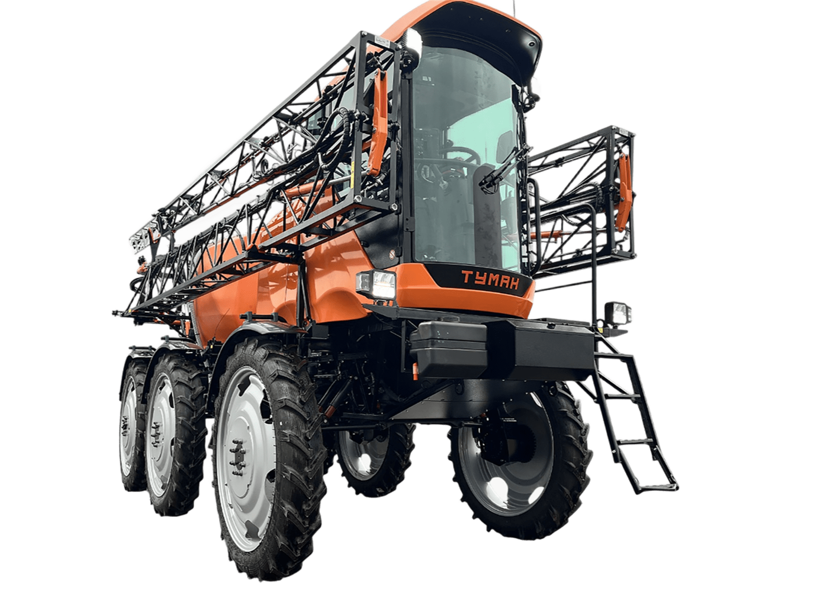 «Туман» может опрыскивать зерновые, пропашные и овощные культуры на всех этапах вегетации. Когда всходы еще небольшие, «Туман» на шинах низкого давления опрыскивает их без риска сломать. Когда же растение становится выше, машина переходит на колеса с высоким клиренсом и работает уже по колее.